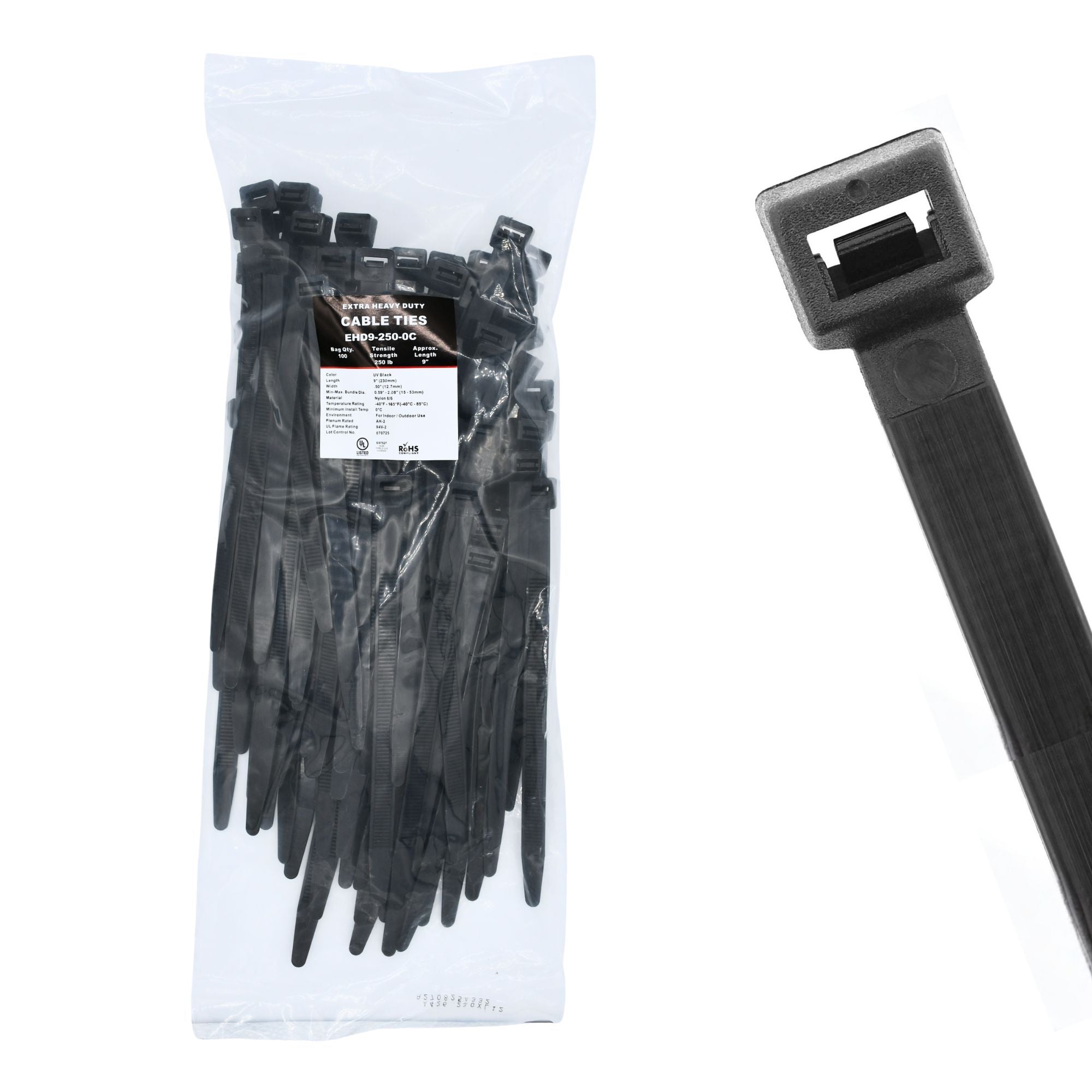 9.06" 250lb UV Black Cable Ties 100/bag Part # EHD9-250-0C